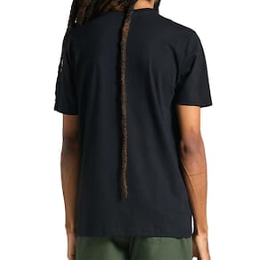 Camiseta Volcom feita em modelagem regular, meia malha 30.1, silk frontal, assinatura Volcom na manga, etiqueta interna e viés contrastante.