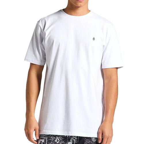 Camiseta Volcom feita em modelagem regular, meia malha 30.1, silk frontal, assinatura Volcom na manga, etiqueta interna e viés contrastante.