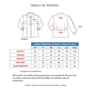 Confira suas medidas na tabela.