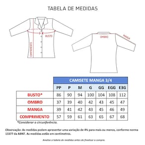 A Camisete ACINTURADA manga ¾ é confeccionada em tecido Ibiza.
