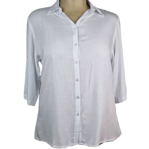 Camisete Feminino 3/4 em Viscose 100% Cor Branca Plus Size.