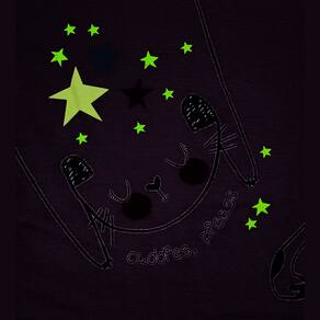 Aposte nesta peça confortável e fresquinha para sua gatinha! Confeccionada em meia malha, nossa camisola na cor rosa possuí uma divertida combinação de cores e estampas, a manga esquerda colorida na cor lima e a direita na cor nuvem, a estampa de gatinha quando vestida passa a sensação de abraço na sua pequena com a frase “Abraços por favor”, a diversão da camisola não para por aí, pois as estrelas brilham no escuro, basta deixar alguns segundos sobre a luz branca e apagar a luz para a diversão começar antes do soninho!