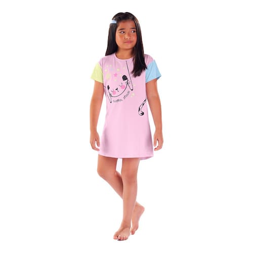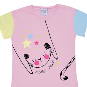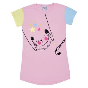 Aposte nesta peça confortável e fresquinha para sua gatinha! Confeccionada em meia malha, nossa camisola na cor rosa possuí uma divertida combinação de cores e estampas, a manga esquerda colorida na cor lima e a direita na cor nuvem, a estampa de gatinha quando vestida passa a sensação de abraço na sua pequena com a frase “Abraços por favor”, a diversão da camisola não para por aí, pois as estrelas brilham no escuro, basta deixar alguns segundos sobre a luz branca e apagar a luz para a diversão começar antes do soninho!