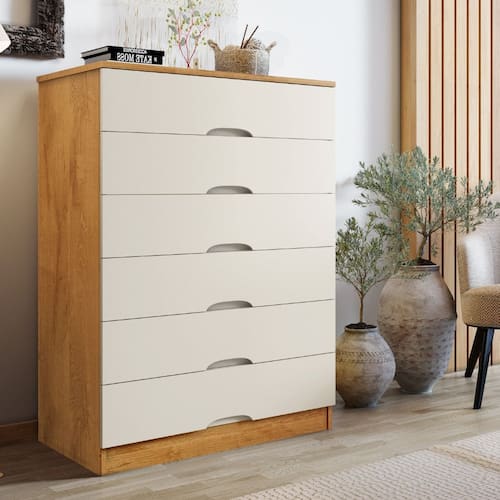 A Cômoda 6 Gavetas Servilha Made Marcs é uma peça versátil e funcional que combina design moderno para o dia a dia. Com estrutura robusta em MDF e MDP de 15 e 25 mm, e fundo em HDF de 3 mm, esta cômoda oferece excelente durabilidade e resistência. Suas gavetas são equipadas com corrediças telescópicas que garantem um deslize suave e seguro, suportando até 5 kg cada. O tampo reforçado suporta até 20 kg, ideal para acomodar objetos decorativos ou itens de uso diário. Os puxadores embutidos proporcionam um visual limpo e elegante, enquanto as sapatas em L asseguram estabilidade e protegem o piso contra arranhões. A Cômoda Servilha é a escolha perfeita para quem busca organização com estilo e qualidade.