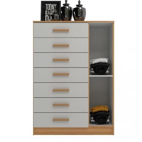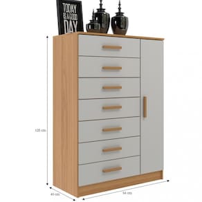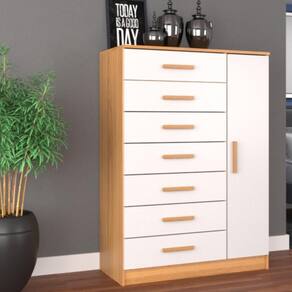 Em busca de um m?vel que una eleg?ncia e funcionalidade? Apresentamos a C?moda New M?naco 7 Gavetas e 1 porta, um verdadeiro tesouro para quem valoriza a organiza??o e o bom gosto na decora??o de sua casa.Fabricada com 100 de MDP, este m?vel ? sin?nimo de qualidade e durabilidade. Suas gavetas e porta proporcionam um amplo espa?o para voc? organizar suas roupas, cal?ados e objetos pessoais de forma pr?tica e eficiente. Puxadores em madeira.Al?m disso, a linha Premium se destaca pelo seu design moderno e elegante, que certamente ir? complementar a decora??o do seu quarto com muito estilo. As reparti??es bem distribu?das garantem maior amplitude para organizar seus pertences