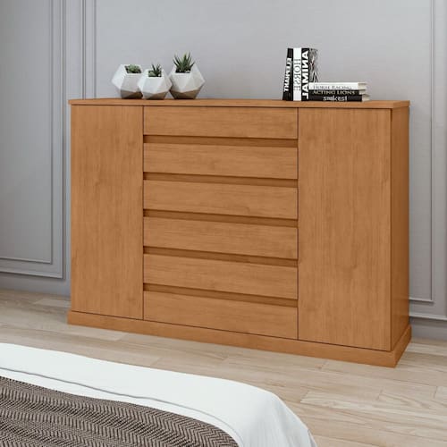 A Cômoda Vedras Lopas é uma solução completa para organização e funcionalidade. Possui 7 gavetas, sendo uma interna com chave, 2 portas com fecho toque e 3 prateleiras internas, além de um cabideiro em alumínio e espaço dedicado para sapatos. Fabricada em MDP/MDF de alta qualidade, conta com tampo robusto de 25mm, garantindo durabilidade e elegância para o ambiente. Ideal para otimizar seu espaço com estilo e funcionalidade.
