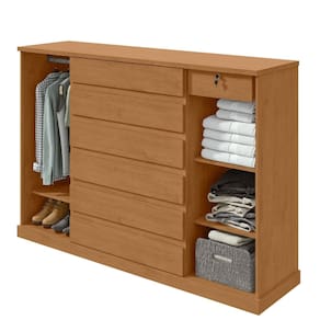 Características: 1 Cabideiro em alumínio 7 Gavetas sendo uma interna com chave 3 Prateleiras 2 Portas Corrediças telescópicas Estrutura em MDP/MDF Fecho toque nas portas e na última gaveta Possui lugar para sapatos Tampo de 25mm