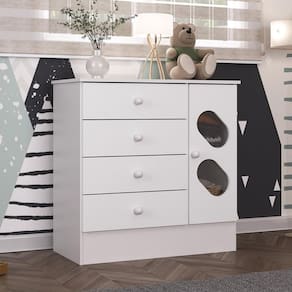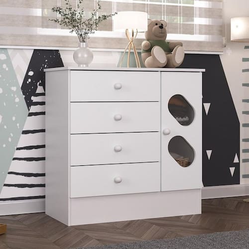 A Cômoda Infantil 3 Gavetas 1 Porta com Janela Maya Rodial combina robustez e estilo contemporâneo para qualquer ambiente. Feita com MDP de 12mm nas laterais, divisões, chapéus e prateleiras, e MDP de 15mm nos rodapés, frente das gavetas e portas, oferecendo durabilidade excepcional. O fundo da cômoda e das gavetas é em MDF de 3mm possuindo também corrediças metálicas de 350mm suaves e puxadores em MDF elegantes. Acabamento em pintura UV fosco com um moderno padrão de tonalidade no interior. Embalagem segura com plástico termoencolhível e papelão garante proteção durante o transporte. Com seu design versátil e qualidade superior, a Cômoda Gincana é a escolha ideal para quem busca funcionalidade e estilo em um único móvel para o lar.