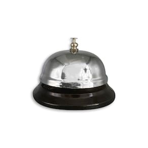 Campainha De Mesa Para Recepção, Restaurante, Balcão Perfeita para ser usada em restaurantes, hotéis, consultórios, entre outros estabelecimentos, essa campainha de mesa garantirá que você tenha praticidade e elegância em chamar a atenção de forma discreta e eficiente.Com design clássico, moderno e minimalista, combina com qualquer ambiente, não ocupa muito do espaço e o som claro e audível garante que ninguém perca a chamada. Além da sua base de metal resistente, garantindo que não quebre com o uso. ESPECIFICAÇÕES: Material: Aço carbono e PP Dimensões: Diâmetro: 8,5cm x Alt.: 6cm Peso: Aprox. 100g CONTÉM:01 CAMPAINHA DE MESA