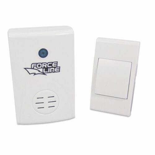 Campainha Digital sem fio Force Line - Alta eficiência, - Baixo consumo da pilha, - 36 opções de campainha, - Design moderno e arrojado, - Muito simples de instalar, - Não requer nenhuma ligação elétrica. Certificada pela Anatel - Nº Homologação: 0973-08-1924. Importante: Não é aconselhável a instalação sobre uma superfície metálica, pois o alcance pode ser prejudicado reduzido consideravelmente ou até mesmo fazer com que ela não funcione. * Quando o som da campainha estiver fraco, aconselhamos a troca das pilhas AA,* Quando a sensibilidade do sensor estiver fraca, aconselhamos a troca da bateria de 12V. Mais Informações - O botão acionador utiliza 1 bateria de 12V modelo 23A inclusa , - O utiliza 2 pilhas de 1,5V tipo AA não inclusa , - Ótimo funcionamento com distância de até 100 metros em área livre , - Para uso em ambiente interno, livre de chuva, umidade e sol, - Frequências RF : 316, 322 e 328MHz.- Frequência: 760Hz e 1000Hz, - Frequência variável alternadamente entre som grave e agudo,Intermitência: 1 a 3 vezes por segundo,Intensidade: >75dB c/ pilhas recarregáveis ,>81dB c/ pilhas comuns ou alcalinas , Autonomia:Pilhas normais - 1 mês 10 acionamentos por dia ,Pilhas alcalinas - 2 meses 10 acionamentos por dia , Acessórios: Parafuso e bucha para fixação na parede não estão inclusos na embalagem.