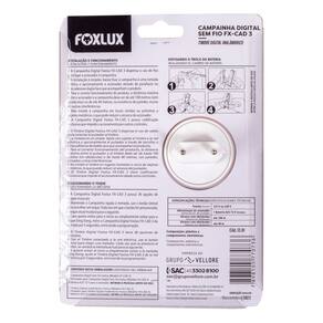 A bateria vem envolta em uma película de plástico transparente. É necessário retirar essa película antes de colocar a bateria na campainha. A película tem uma marcação traçada por onde deve ser feita a remoção. A Campainha Digital sem Fio Foxlux possui codificação exclusiva que impede o acionamento por outros controles.