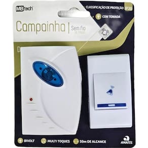 Campainha Sem Fio Wireless Casa Apartamento Escritório MBTEC Campainha Sem Fio - Doorbell Wireless Transforme a experiência de receber visitas com a nossa Campainha Sem Fio Com 36 toques diferentes, você pode personalizar o som da sua campainha conforme o seu gosto. Características: Transmissor: Escolha o melhor local para fixação, remova a tampa com uma chave pequena e coloque as baterias respeitando as polaridades. Pode ser fixado com parafuso ou fita dupla-face inclusa . : Plugue em uma tomada visível para garantir a melhor qualidade de som. Pode ser fixado em uma peça móvel para deslocamento conforme necessário. Seleção de Sons: 36 opções de toques para personalizar o som da sua campainha. Utilize a chave seletora na base do para escolher. Especificações: Alimentação : Bi-volt Alimentação Transmissor: Pilha 23A Sonoro: 36 toques Frequência: Única Alcance: Até 50 metros Índice de Proteção: IP20 Homologação: ANATEL, Produto Homologado 17499-22-12086 Garanta já a sua Campainha Sem Fio e leve praticidade e estilo para a sua casa Nota: Produto homologado pela ANATEL, garantindo qualidade e segurança. Marca: Não Informado Ean: 7908429313066