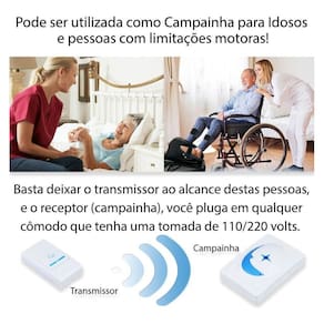 facilidade e praticidade basta fixar o transmissor com o fixador de dupla face incluso , onde quiser, na fachada da sua casa, qualquer cômodo, escritório ou comércio, plugar a campainha em uma tomada e pronto você terá apenas que, colocar a bateria já inclusa , no transmissor e escolher entre os 32 toques melodias , que mais lhe agradar instalação fácil e rápida ela possui um raio de alcance de 30 metros em campo aberto flexibilidade de uso total pode ser utilizada como campainha para idosos e pessoas com limitações motoras, basta deixar o transmissor ao alcance destas pessoas, e o campainha , você pluga em qualquer cômodo que tenha uma tomada de 110/220 volts. Muito mais segurança para a sua família e o melhor custo benefício para você bonita, prática, e de rápida instalação