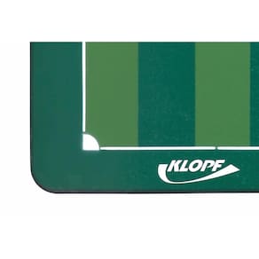 Faixas no campo em dois tons de verde estilo europeu e linhas demarcatórias brancas.
