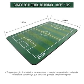 Campo de Futebol de Botão Klopf Cód. 1029 – traga a emoção dos estádios para sua casa com este campo de alta qualidade, resistente e com design que simula os grandes campos europeus.