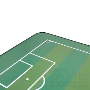 Material: Campo em MDP de 15 mm. Proteção: Bordas revestidas em plástico flexível. Estética: Faixas em dois tons de verde com linhas brancas. Dimensões da Mesa: 1,27 m (Comprimento) x 0,835 m (Largura). Peso Aproximado: [9Kg].