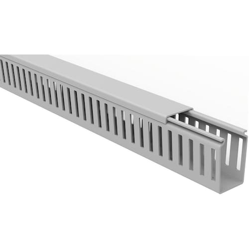 Canaleta Para Painel Tramontina Semiaberta Cinza 30x50x2000 Mm Canaleta para Painel Tramontina Semiaberta Cinza 30x50x2000 mm Ao desenvolver seus projetos elétricos, opte pela canaleta para painel Tramontina semiaberta cinza 30x50x2000 milímetros . Produzida em termoplástico de alta qualidade, ela é ideal para a montagem eficiente de painéis elétricos, proporcionando proteção e organização aos fios e cabos. Com 2 metros de comprimento, ela é de fácil instalação e apresenta furações pré-determinadas que agilizam o processo de fixação durante a montagem do painel. Ela proporciona maior segurança para as instalações elétricas, reforçando o compromisso da Tramontina com a qualidade de cada item e das suas instalações!