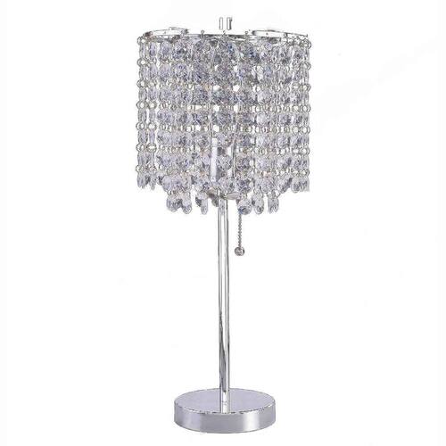Candeeiro de mesa Benjara Chandelier com detalhes em cristal com moldura tubular, cromada e transparente