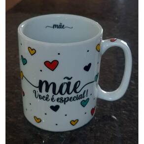 Caneca 300ml Frase Mãe - Porcelana - Decoração Caneca Completa Corações