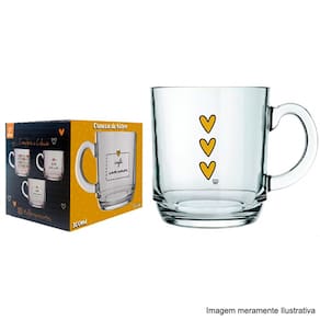 Com a Coleção Love, o amor é celebrado todo dia! Possui design exclusivo e apaixonante! Produzida em vidro incolor com corações decorativos e os dizeres "Café com amor". Possui 300ml, ideal para bebidas quentes. Contém embalagem personalizada, sendo uma excelente opção para presentes.