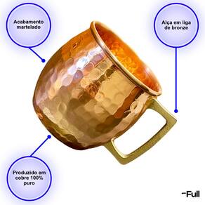 - Caneca fabricada em cobre 100% puro e alça em liga de bronze.