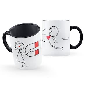 Casalzinho de palito, sendo arrastados pelo imã do amor nessa linda caneca :)
