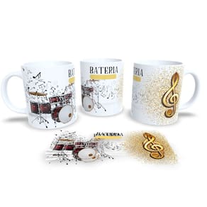 Caneca Branca de Porcelana Personalizada Coleção Instrumentos Musicais