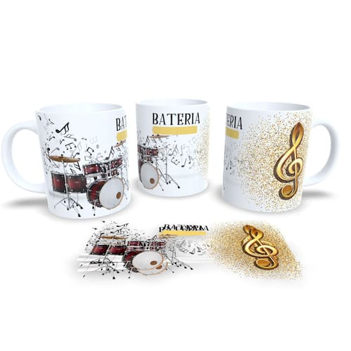 Caneca personalizada de porcelana de alto brilho, com interior e Alça Branca Coleção Instrumentos Musicais.