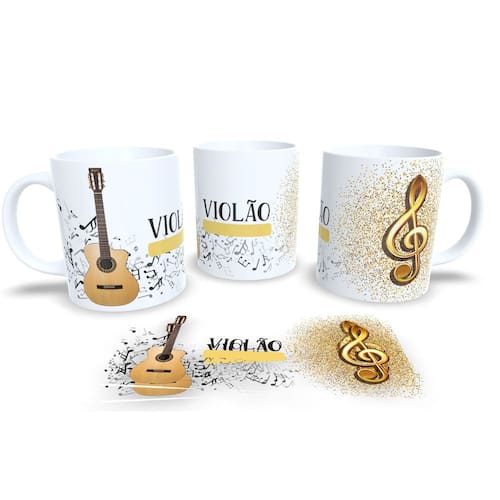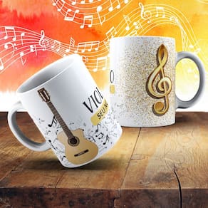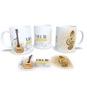 Caneca Branca de Porcelana Personalizada Coleção Instrumentos Musicais