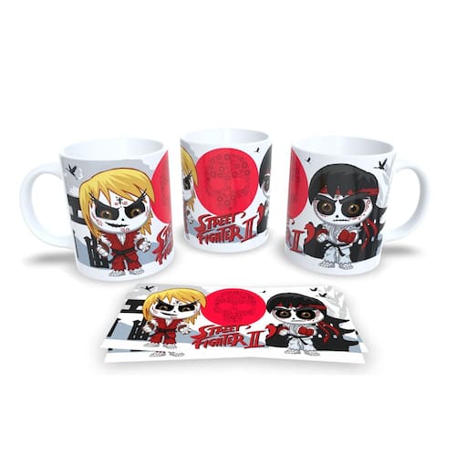 Caneca personalizada de porcelana de alto brilho, com interior e Alça Branca Coleção dia dos Mortos.