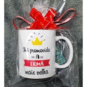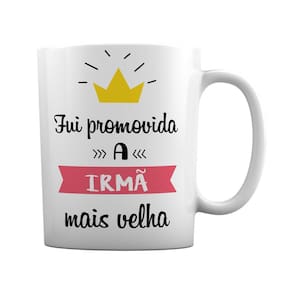 MAS O QUE VOCÊ VAI GANHAR COM ISSO? Com a Caneca Fui Promovida a Irmãa mais Velha você vai fazer com certeza alguém feliz presenteando com essa linda lembrancinha.