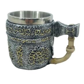 Caneca Caveira Cz01L2 Gladiador Aço Inox 3D Medieval 400 Ml