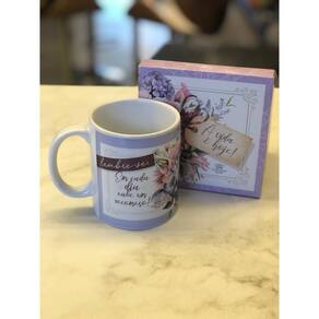 Material: Cerâmica. Contém: 1 Caneca de 300 ml e uma caixa decorativa. Cuidados: Lavar com água e sabão neutro. Não utilizar produtos químicos ou abrasivos. Impactos podem danificar o produto. Pode ir ao micro-ondas e à lava-louças.