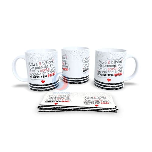 * Material: Cerâmica * Capacidade: 325 ml * Peso: 0,350 kg (unidade) * Estampa: Sublimação