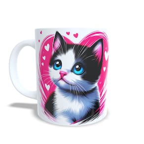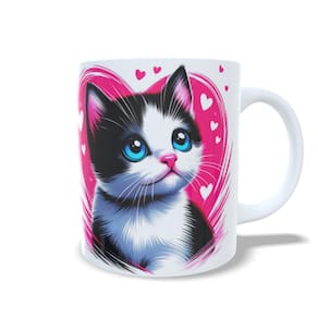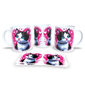 Caneca Cerâmica Personalizada Gato / Gatinho Branco e Preto / Frajola - Modelo 785273