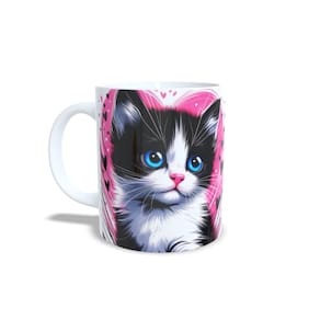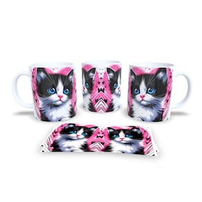 Caneca Cerâmica Personalizada Gato / Gatinho Branco e Preto / Frajola - Modelo 785276