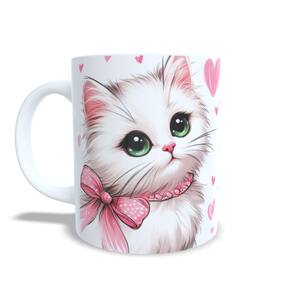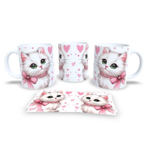 Caneca Cerâmica Personalizada Gato / Gatinho Branco - Modelo 785263