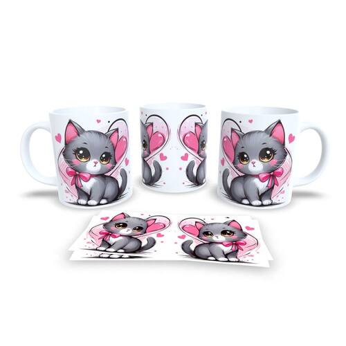 Caneca Cerâmica Personalizada Gato / Gatinho Cinza - Modelo 785269