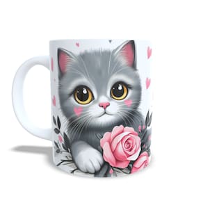 Caneca Cerâmica Personalizada Gato / Gatinho Cinza - Modelo 785277