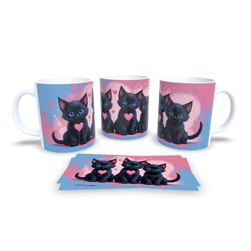 Caneca Cerâmica Personalizada Gato Gatinhos Preto - Modelo 785025
