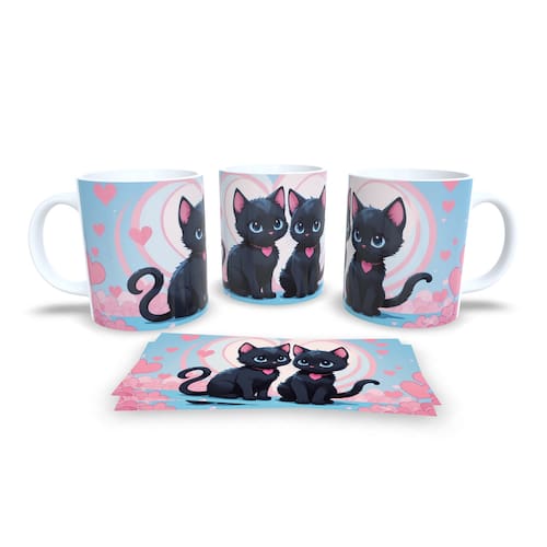 Caneca Cerâmica Personalizada Gato Gatinhos Preto - Modelo 785027