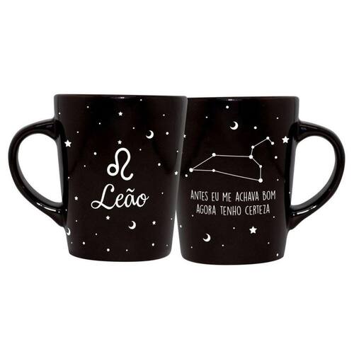 Caneca cerâmica signos zodíaco preta presente 270ml leão Inspiradas pelo zodíaco, a coleção signos ilustradas irá te surpreender e deixar sua bebida favorita ainda mais saborosa a caneca signos é feita em cerâmica e tem capacidade de 270ml, design clean ideal para um café, chá, chocolate quente ou qualquer bebida de sua preferência. Sua estampa em branco possui a constelação do signo e uma frase que combina perfeitamente.