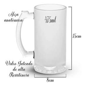 >> INFORMAÇÕES GERAIS- Capacidade: 475ml- Material: VIDRO JATEADO ( EFEITO CONGELADO)- Altura da max. da arte: 9,5cm- Comprimento max. da arte: 21cm- CONSERVA A BEBIDA GELADA POR MAIS TEMPO;- NÃO PINGA POR FORA DA CANECA;- PODE SER LEVADA AO FREEZER;- VIDRO ESPESSO SUPER RESISTÊNTE.>>ATENÇÃO- Cuidado na lavagem: usar esponja macia, não abrasiva, o lado amarelo da esponja. Evitar lã de aço e produtos químicos fortes;- O manuseio é decisivo para a durabilidade da peça.* TIRE SUAS DÚVIDAS NO CAMPO DE PERGUNTASGarantia do vendedor: 30 dias
