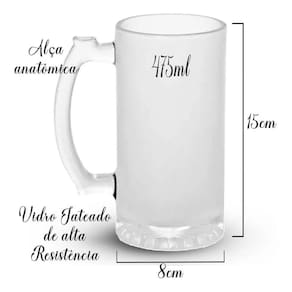 >> INFORMAÇÕES GERAIS- Capacidade: 475ml- Material: VIDRO JATEADO ( EFEITO CONGELADO)- Altura da max. da arte: 9,5cm- Comprimento max. da arte: 21cm- CONSERVA A BEBIDA GELADA POR MAIS TEMPO;- NÃO PINGA POR FORA DA CANECA;- PODE SER LEVADA AO FREEZER;- VIDRO ESPESSO SUPER RESISTÊNTE.>>ATENÇÃO- Cuidado na lavagem: usar esponja macia, não abrasiva, o lado amarelo da esponja. Evitar lã de aço e produtos químicos fortes;- O manuseio é decisivo para a durabilidade da peça.* TIRE SUAS DÚVIDAS NO CAMPO DE PERGUNTASGarantia do vendedor: 30 dias