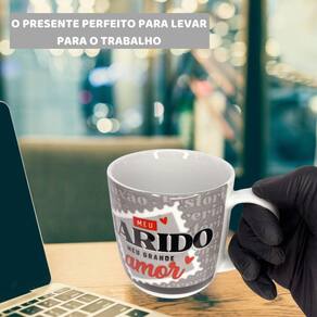 Caneca Cinza Porcelana Premium 360ml Café Meu Marido Grande Amor Esposo Presente