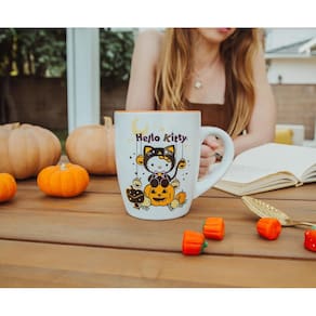 - Uma entrega sazonal de outono: entre no espírito do Halloween com esta caneca exclusiva com latte. Sua temporada assustadora certamente será cheia de sustos e prazeres com a Hello Kitty por perto para dar um impulso às suas festividades.