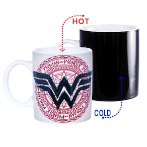 - CARACTERÍSTICA DIVERTIDO: Adicione qualquer líquido quente para ver a caneca ficar branca e o logotipo da Mulher Maravilha aparecer magicamente!