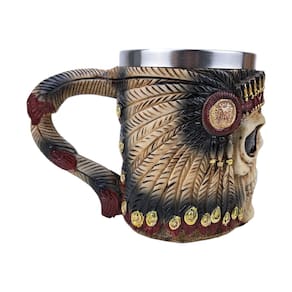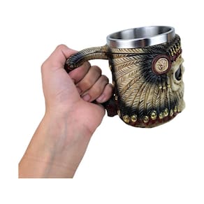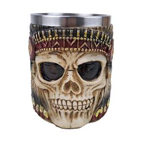 Caneca de Caveira Com Cocar Indígena 3D - Resina e Inox Caneca de Caveira Com Cocar Indígena 3D em Resina e Inox
