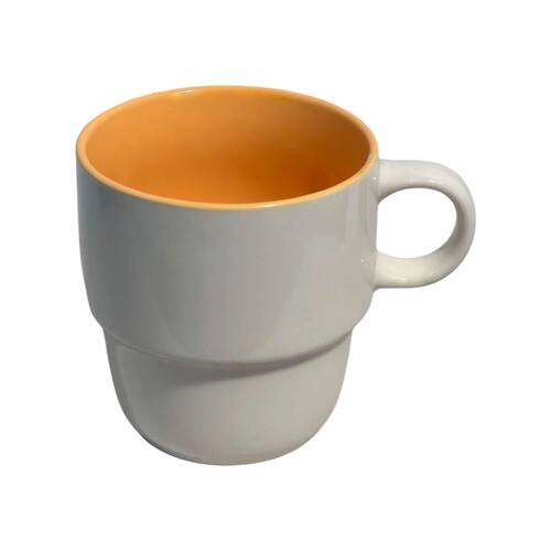 Transforme seus momentos de café com esta elegante caneca de cerâmica Com acabamento externo branco e interior vibrante na cor laranja queimado, ela combina estilo e praticidade no dia a dia. Seu design empilhável com detalhe em relevo facilita o armazenamento, ideal para cozinhas modernas.