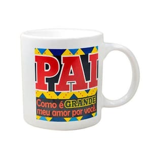 Caneca De Cerâmica Frase Pai Como É Grande 320 Ml Caneca de cerâmica frase Pai como é grande meu amor por você com capacidade para 320 ml. Observação:as cores dos produtos podem sofrer variações em função das características do monitor e do ambiente durante sua visualização. Matéria prima: Cerâmica. Medida aproximada da embalagem do produto: Compr. X Larg. X Alt. : 14x10x16 cm.